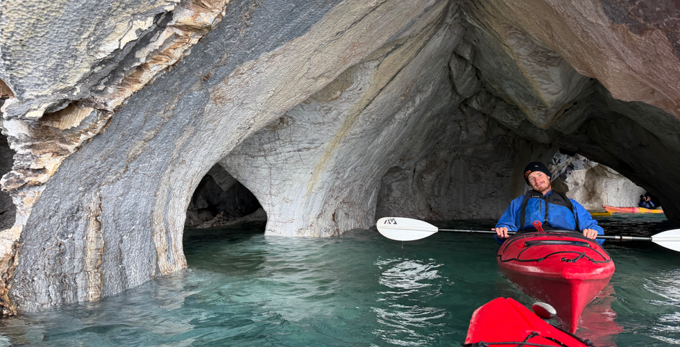 On to the next activity, we were able to give our legs a break and enjoy nature through a nice kayaking trip along the second-largest lake in South America, General Carrera. Well, that is the Chilean name of the lake. This very large, crystal clear lake stretches between Argentina and Chile, and the name of the lake is different for each country. Argentina’s name for the lake is Lago Buenos Aires (no, we weren’t close to Buenos Aires… yet). Anyways, we did an amazing kayak trip to the infamous marble caves of Chile. They were beautiful, and it was so nice to see how they were preserving nature.
