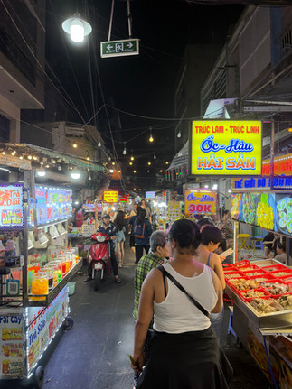 Highlights of the tour included visiting 6 different dining establishments where we were the only non-Vietnamese people eating. (#Goals). We were also able to see so many locations throughout the city with our motorized transportation, visiting almost every district. The city really came alive at night, and not just because the 20-degree difference in temperature between midday and evening… or maybe that is a big reason the city came alive lol. - BUT the city lights at night were still cool to admire on the back of the moped with wind blowing through your hair, and the quiet thoughts of “this could be the end” in the background. JOKING parents & grandmothers. It honestly is way more dangerous trying to cross the street than riding on one of these mopeds. Overall, the tour was amazing, and we ended our night with live music, so all in all, an incredible experience.