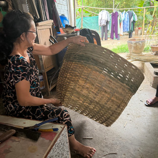 Next, we were off to bamboo baskets. Visiting more of her friends along the riverbank, we watched as they handcrafted these large bamboo baskets. She said they are extremely useful in the rice fields. We were informed that, unfortunately, the art of this hand crafting will die when her friends do because the youth have no interest in continuing on with this work…. She explained how the young people don’t want to work as hard and want easier jobs now. Doesn’t sound familiar at all, right?