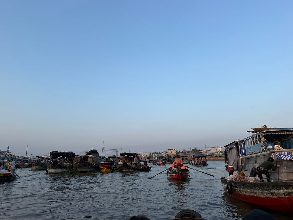 Another incredible tour and guide. Sophia was incredible, explaining how the market previously included over 1,000 boats selling goods. However, with more bridges built connecting towns by car, and other developments, the floating market has dwindled to about 150 boats. The larger boats usually sell large quantities of produce, with whatever they are selling tied at the top of a bamboo stick to indicate what is being sold. The smaller boats zip around selling coffee, tea, juice, and noodles to tourists and workers alike.