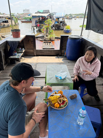 We then wrapped up our tour back in the floating market, where it was much calmer during the mid-day heat. We enjoyed some fruit and a tour on a family's boat that they live on year-round. Biggest takeaway, no matter the limited space, there is always room for a karaoke setup.